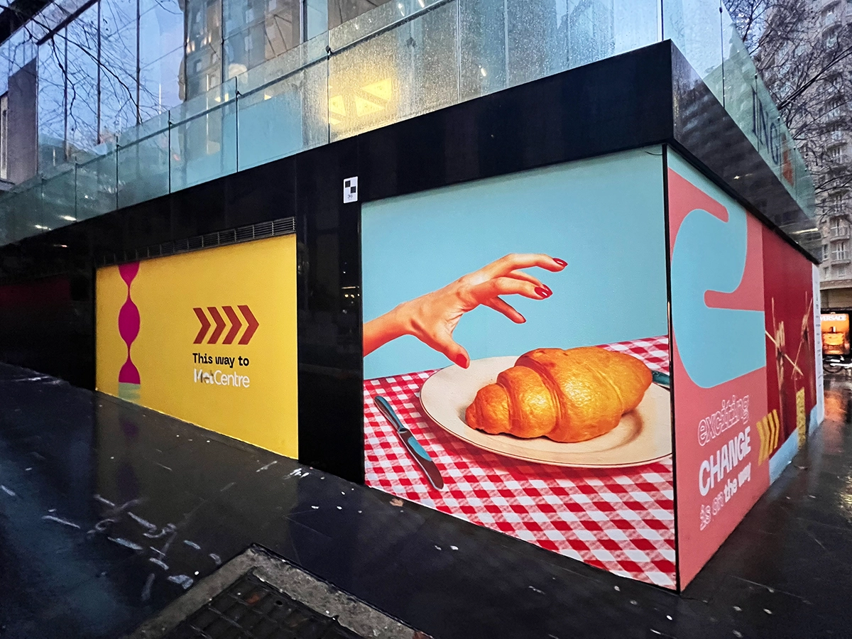 This wasn’t treated as a standard hoarding job. No generic "new retailers coming soon" was going to do... In a busy city environment, neutral or safe design disappears quickly, so we leaned into something more unexpected, surreal, eye-catching visuals that made people look twice.