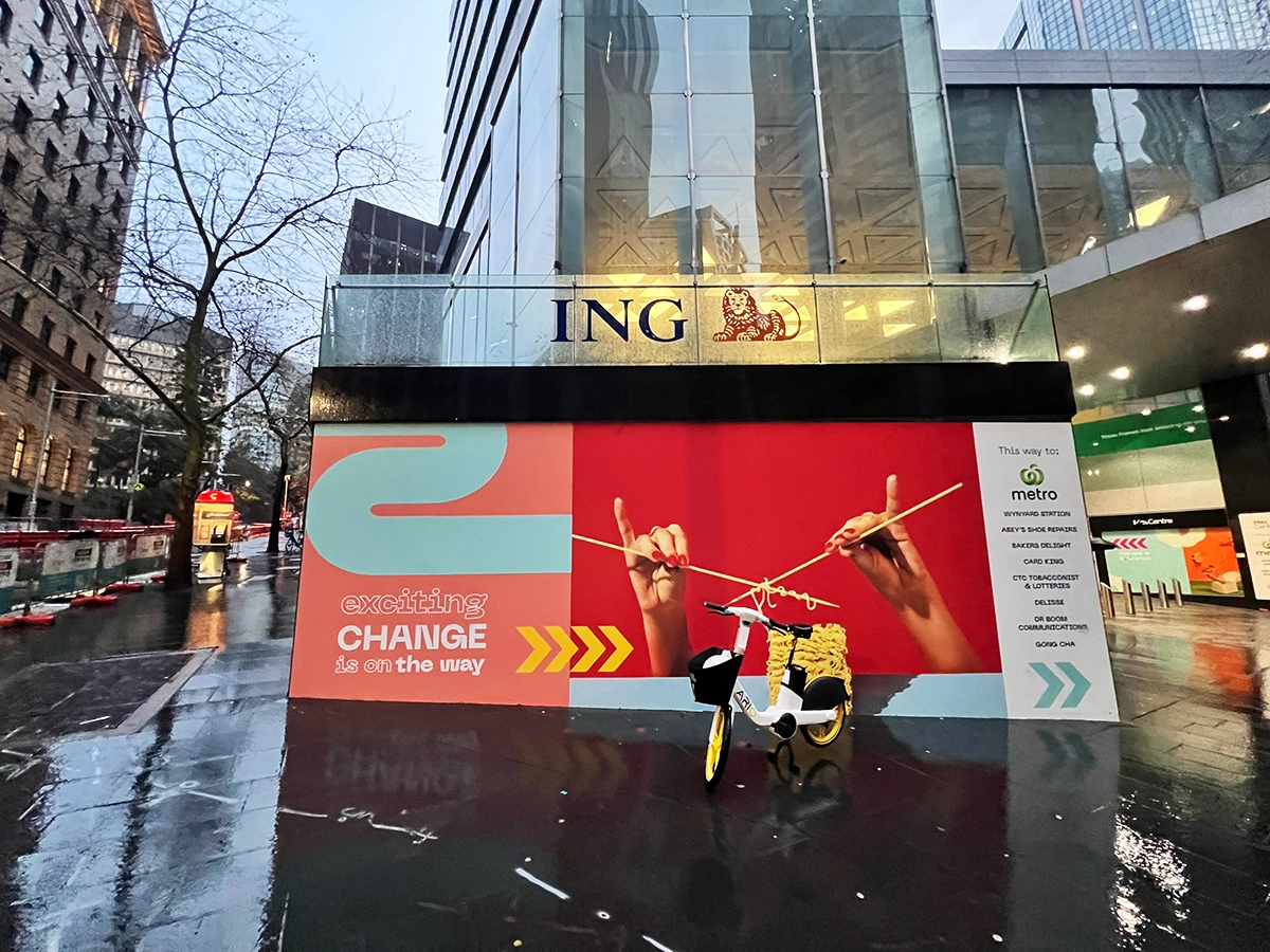 We used bold, food-led photography with unusual, slightly playful twists, like the noodles being knitted to create intrigue and stop passersby in their tracks. It gave the windows personality, without relying on direct retailer promotion.